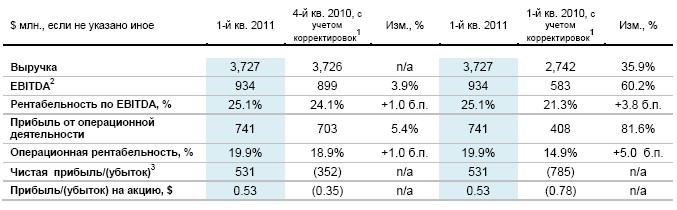 "Северсталь" сообщает финансовые результаты своей работы за 1-ый квартал 2011 года.