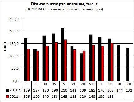 Украинский экспорт стали: вектор вниз. "UGMK.INFO (Украина)". 30 ноября 2011