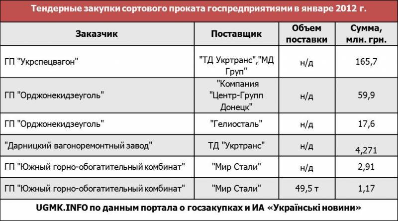 | 01.01.2012 | 01.02.2012 | Изменение цены (%) | Изменение цены (грн./т) | ||
