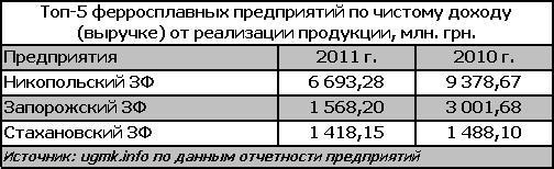 Значительное падение выручки и убытки ферросплавных предприятий сами производители объясняют ростом себестоимости продукции вследствие удорожания электроэнергии, а также падением объемов отгрузки и цен вследствие резко возросшего импорта ферросплавов в Украину.