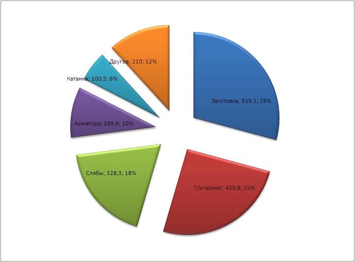 Структура украинского экспорта металлопродукции в июле 2012 г., тыс. т