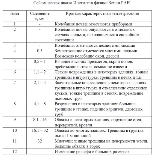 Как известно, около 5% территории России расположено в зоне риска чрезвычайно опасных землетрясений: до 9 баллов по шкале Рихтера. Это весь Дальний Восток (включая Сахалин, Курилы и Камчатку), Северный Кавказ, Алтай, Саяны, Прибайкалье, Становое нагорье и Якутия. Еще 20% территории периодически подвергается воздействию подземных толчков силой до 7 баллов, причём в этих местностях проживает до 20 млн. человек! Остальные районы (к ним относится, в частности, и Центральная Россия, включая Москву) считаются умеренно спокойными, но и здесь возможны толчки силой до 5 баллов, вызванные отголосками крупных тектонических катастроф (см. табл. 1).