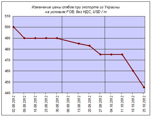 Начиная с середины августа и по вторую декаду октября, цена экспортируемой из Украины квадратной заготовки неуклонно снижалась. По данным ГП "Укрпромвнешэкспертиза" (УПЭ), пиковое значение августа – 560 долл./тонн – за два месяца снизилось более чем на 10%, до 503 долл./тонн. А в статистике ИА "Металл-Курьер" (МК) минимум оказался даже ниже отметки 500 долл./тонн и составил 498 долл./тонн.