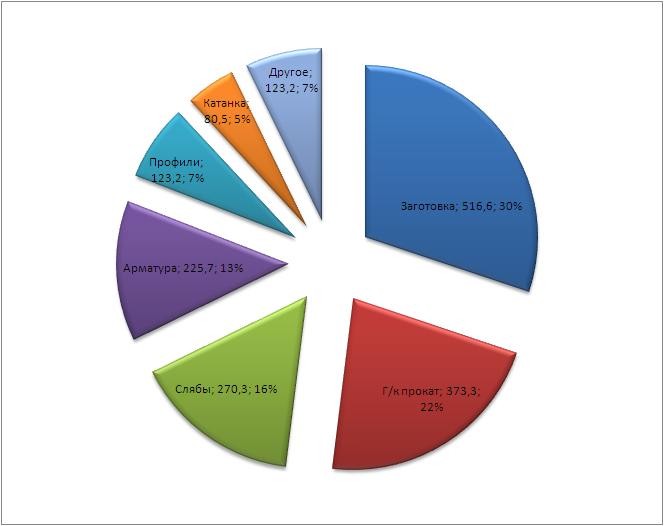 Структура украинского экспорта металлопродукции в октябре 2012 г., тыс. т