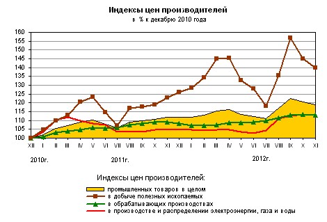 Об индексе цен производителей промышленных товаров в ноябре 2012 года.