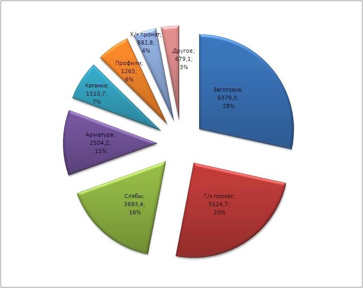 Структура украинского экспорта металлопродукции в 2012 г., тыс. т