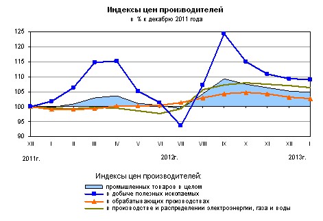 Об индексе цен производителей промышленных товаров в январе 2013 года.