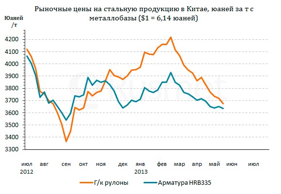 Спад на китайском рынке стали продолжается уже три месяца. За это время котировки на основные вида проката опустились до уровня сентября-октября прошлого года и продолжают снижаться. Весьма значительное негативное влияние на рынок оказало недавнее решение корпорации Baosteel об уменьшении июньских котировок на плоский прокат на $24-29 за т. Ее примеру последовали и многие другие производители стали в стране.