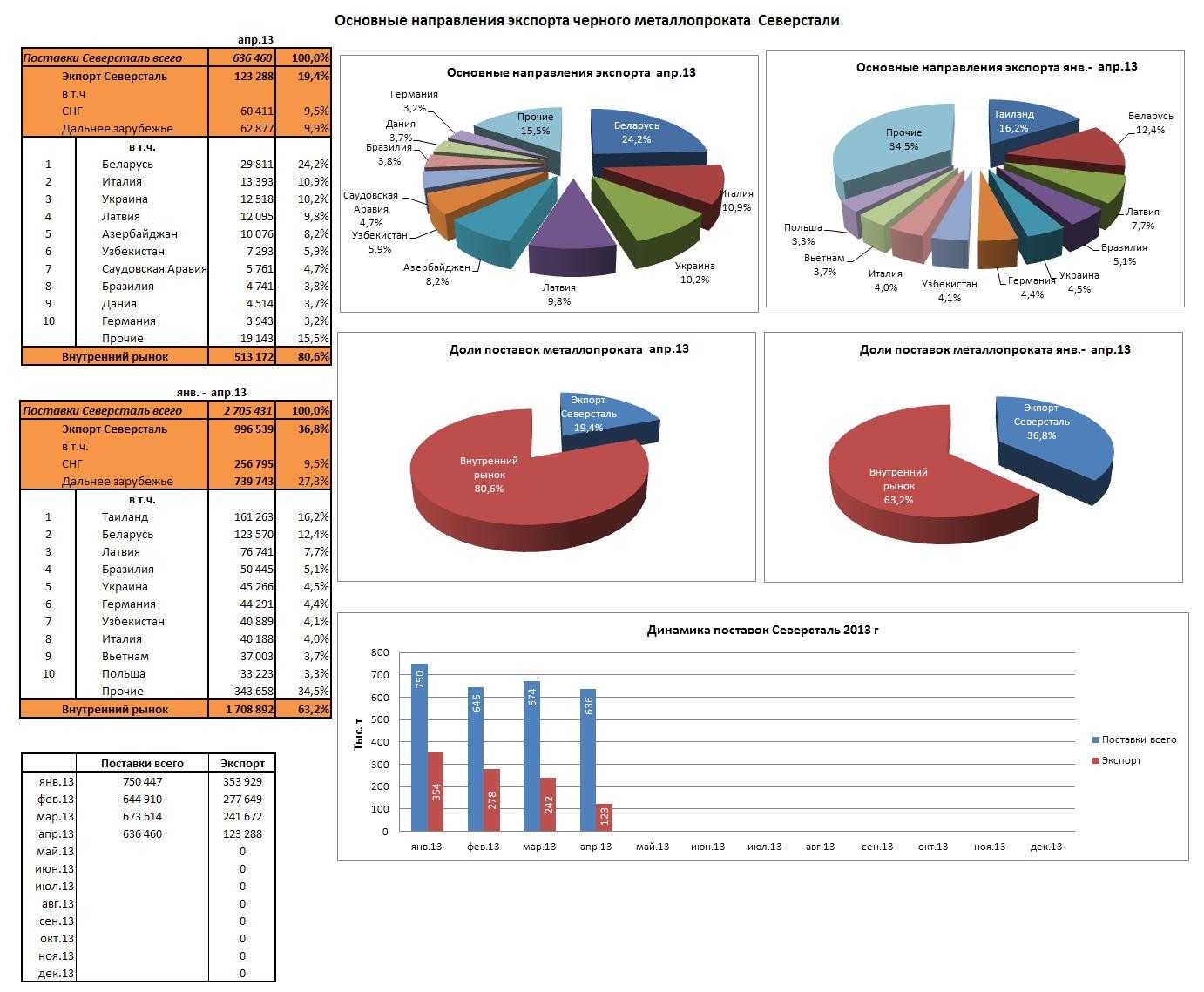Экспорт российского металлопроката (апрель 2013).