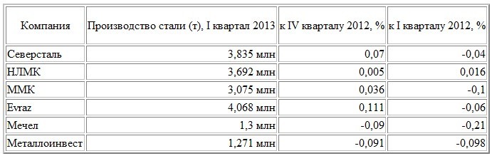 Закономерными стали и производственные итоги первого квартала, которые уже подвели отечественные металлурги. Результаты по сравнению с предыдущим, традиционно слабым кварталом улучшились, но по сравнению с первым кварталом прошлого года практически все ведущие игроки показали сокращение производства (см. таблицу).