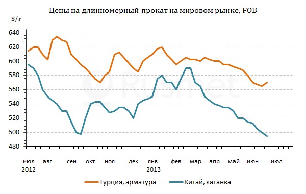 Судя по всему, нынешнее подорожание турецкой арматуры имеет временный характер. С приближением Рамадана спрос, очевидно, будет сокращаться и восстановится лишь ближе к началу августа. Кроме того, традиционные поставщики в ближневосточном регионе ощущают серьезную конкуренцию со стороны китайских компаний, которые готовы продавать катанку и арматуру в страны Средиземноморья по $525-545 за т CFR, т.е. менее чем по $500 за т FOB. Многие потребители приобретают эту продукцию несмотря на сравнительно большие сроки доставки.