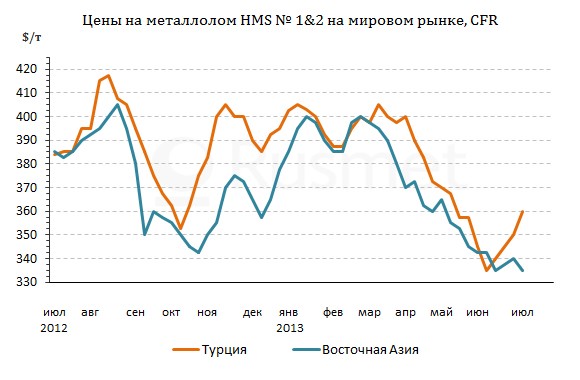 Р’ результате, если РІ середине РёСЋРЅСЏ поставки европейского металлолома HMS в„– 1&2 (80:20) РІ Турцию осуществлялись РЅР° СѓСЂРѕРІРЅРµ РїРѕСЂСЏРґРєР° $340-345 Р·Р° С‚ CFR, то РІ первых числах июля уровень цен подскочил РґРѕ около $360 Р·Р° С‚ CFR. РџСЂРё этом, снижение РєСѓСЂСЃР° евро РїРѕ отноС?ению Рє доллару РЅРµ оказало никакого воздействия РЅР° котировки. Американский материал HMS в„– 1&2 (80:20) предлагается РІ Турцию РїРѕ $360-365 Р·Р° С‚ CFR, хотя эти цены имеют, РІ РѕСЃРЅРѕРІРЅРѕРј, виртуальный характер. Р’ последнее время сделками РѕРЅРё РЅРµ подтверждаются. Р?Р·-Р·Р° РґРѕСЂРѕРіРѕРІРёР·РЅС‹ турецкие металлурги сократили закупки. РќР° рынке остаются только те компании, которым необходимо РІ ближайС?ее время пополнить запасы сырья.