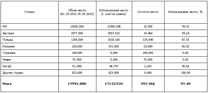 Напомним, что с 1 октября 2012 г. по 30 июня 2013 г. квота была выбрана на 95,98%.