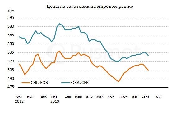 Снижение курсов валют ряда стран способствует спаду на рынке заготовок.
